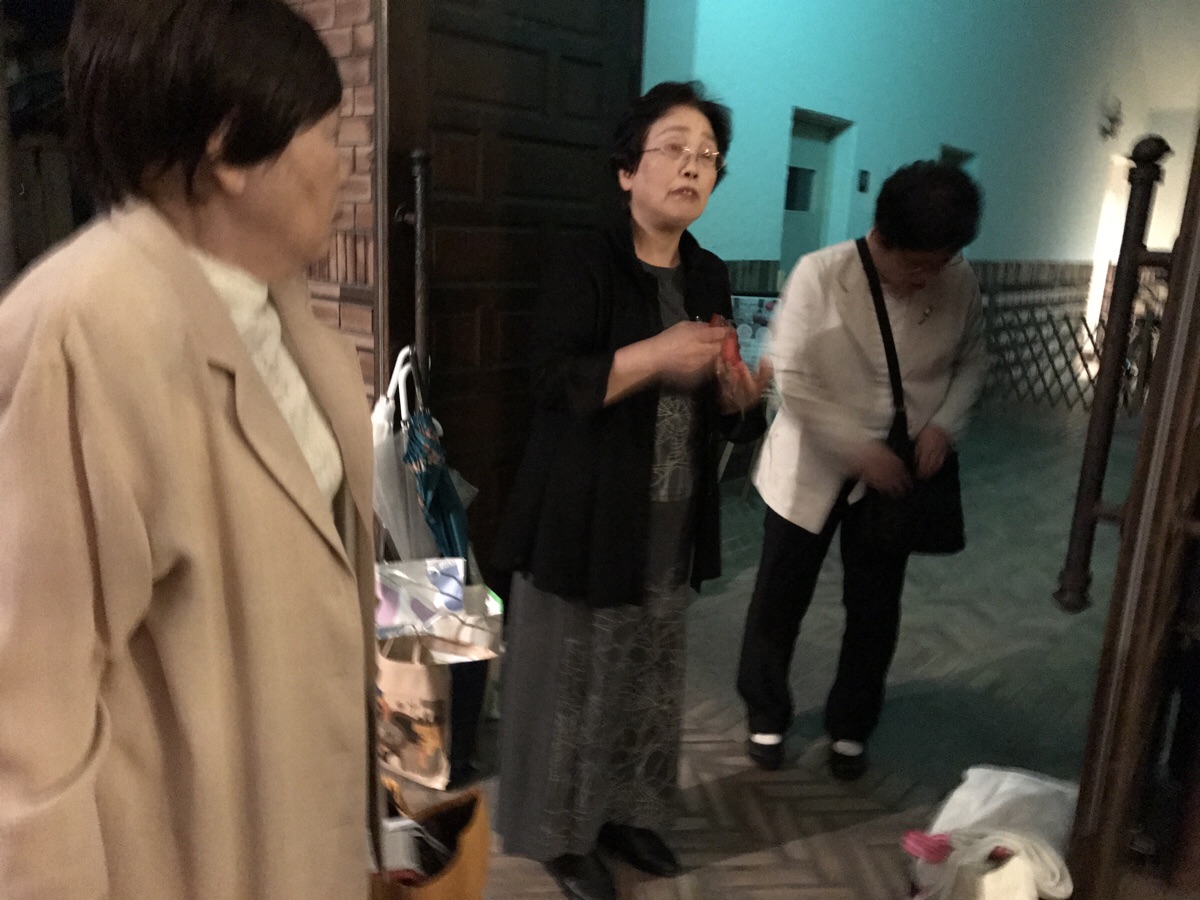 時折笑いを誘うメッセージを聞き入ってます。 広島 織田
