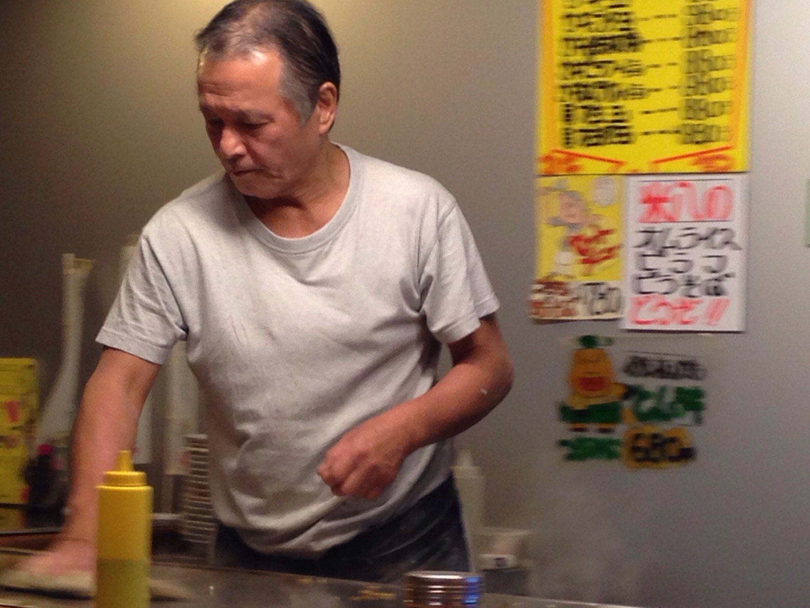 前来たら、おじさん話しに夢中になり、ソース焦がしちゃいました。 愛嬌抜群です。 岡山