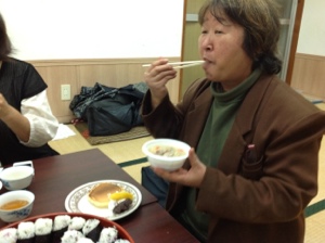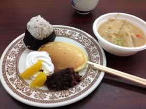 おにぎり、豚汁、パンケーキ! 美味しいです。