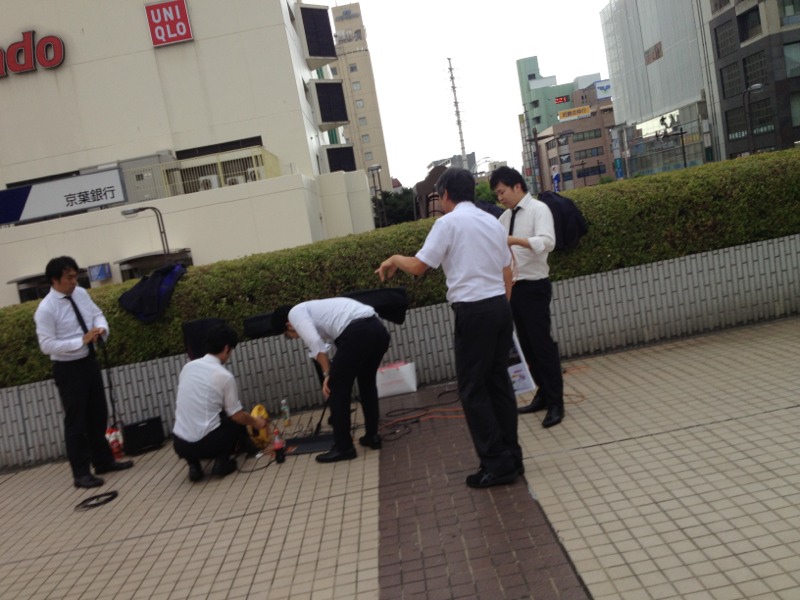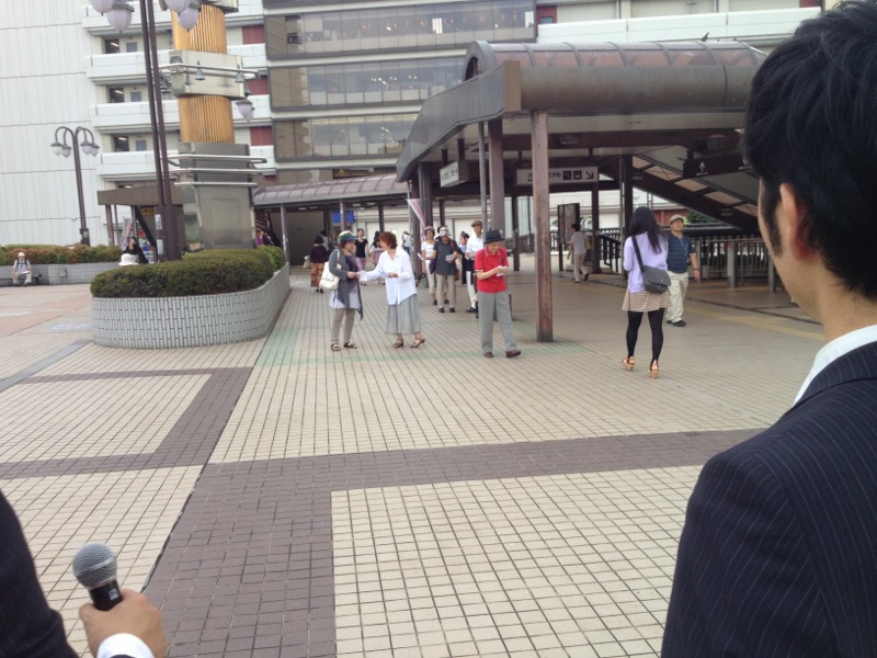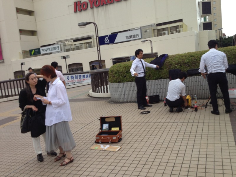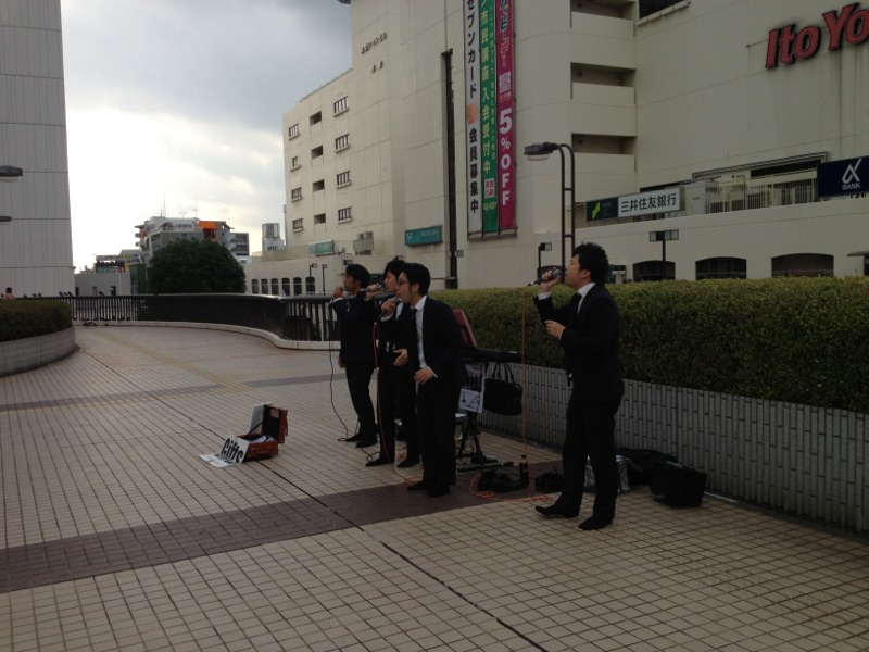 立ち止まって聴いておられます。 チラシも沢山配られています。