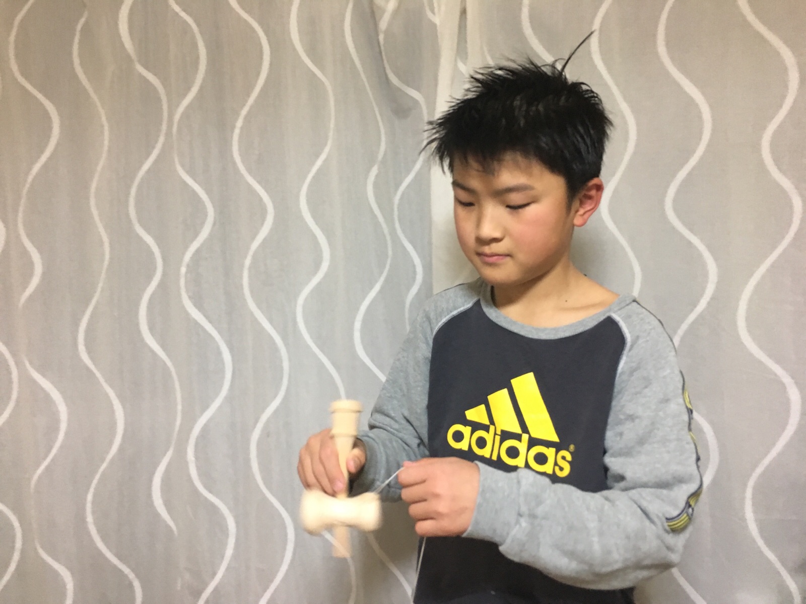 プレゼントにもらったケン玉やってます! ドヤ顔( ͡° ͜ʖ ͡°) お母さんは立っている髪の毛が気になります^ ^ デニシ