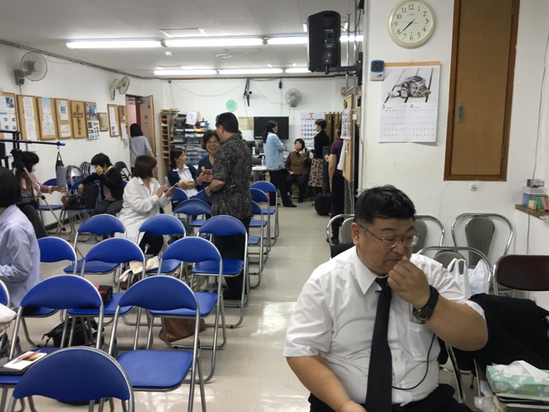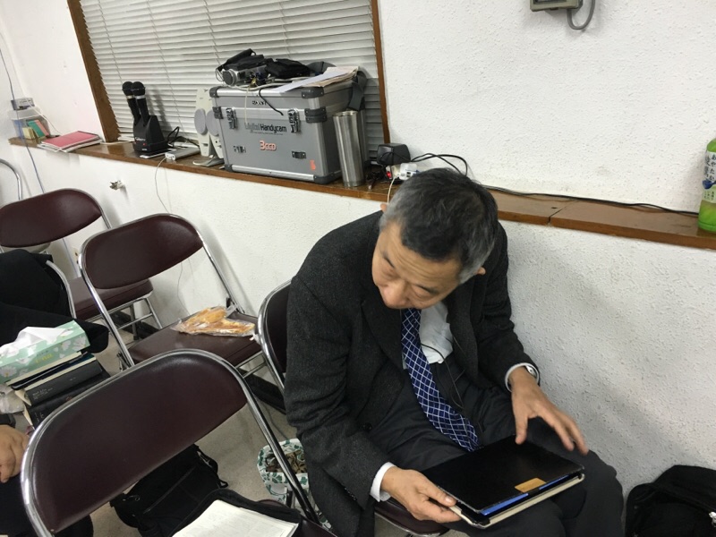 教会に到着しました! 永藤さん、先ほど、ファミリーホームのためのミーティングにて、話しが出た、必要な家具の情報を検索されてます! peter