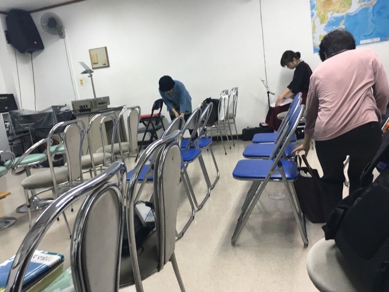 会堂、まだだれもいません!