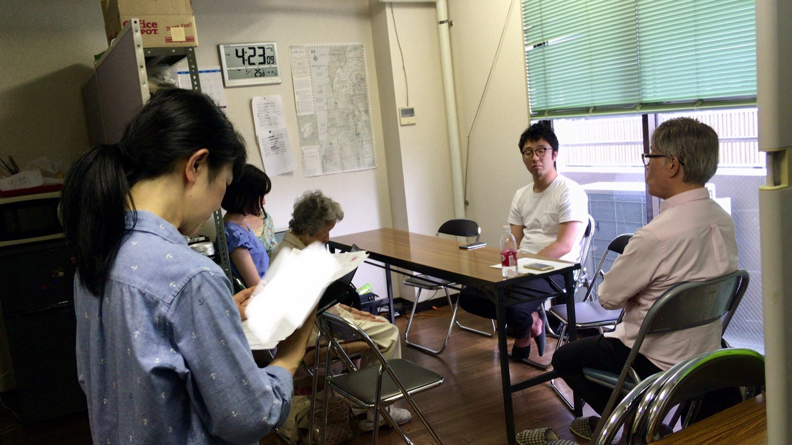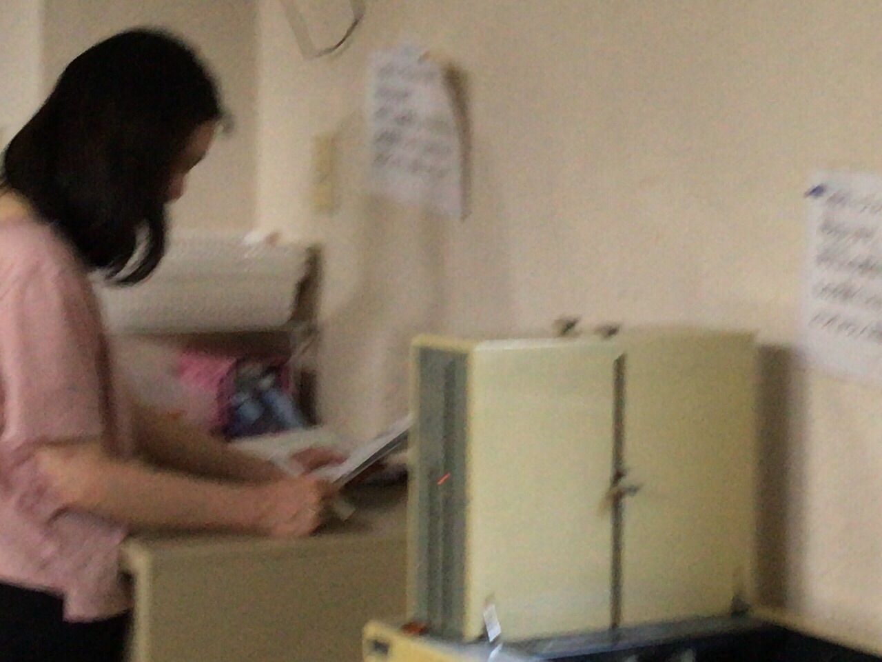 白馬キャンプ会計の作業をされています今村さん! 教会事務所