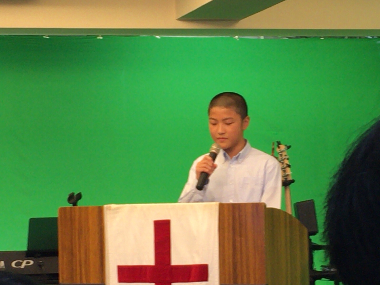 今日は出西ダビデ君が洗礼を受けます。 まずダビデ君の証です。