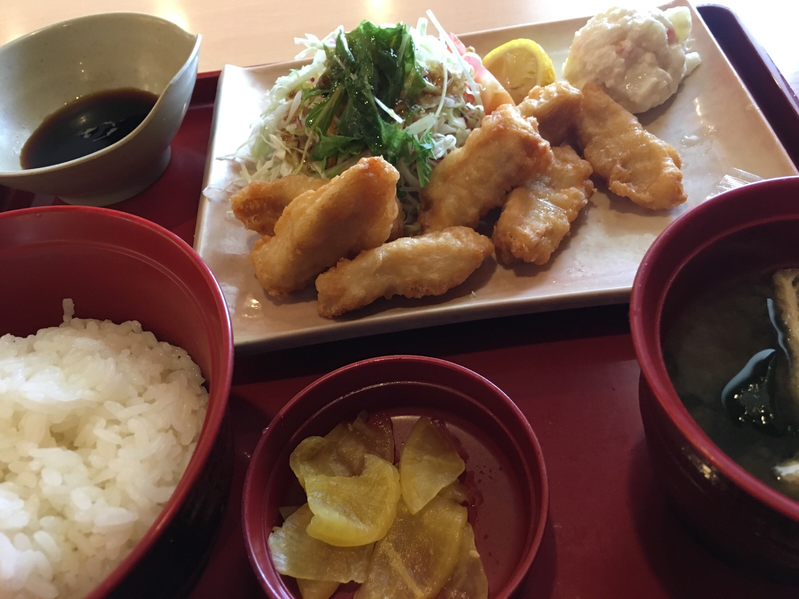今日は外で食事取ってます。 とり天定食です。 Kayano
