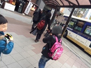 バスに乗ります。