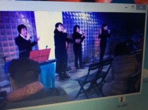 電車の中でクリスマスゴスペルコンサートを見ています!
