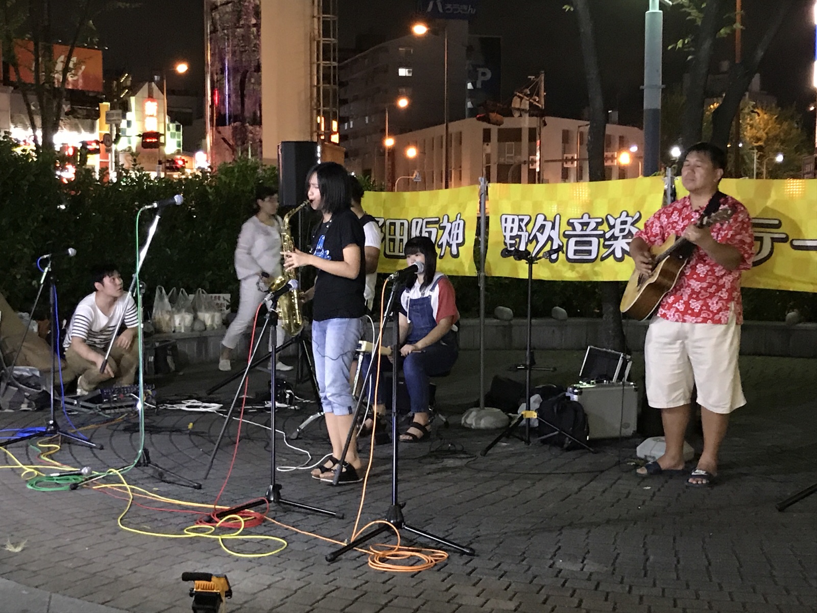 ノダヤオンで、前田サラバンドの演奏。通りかかった外人さんもベンチに座ってじっくり聞いておられます。区役所の担当さんも聞き入っておられるようです。