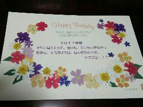 ふふふ。 今日のポットラックで、バースデーカードもらいましたぁ。(*^^*)