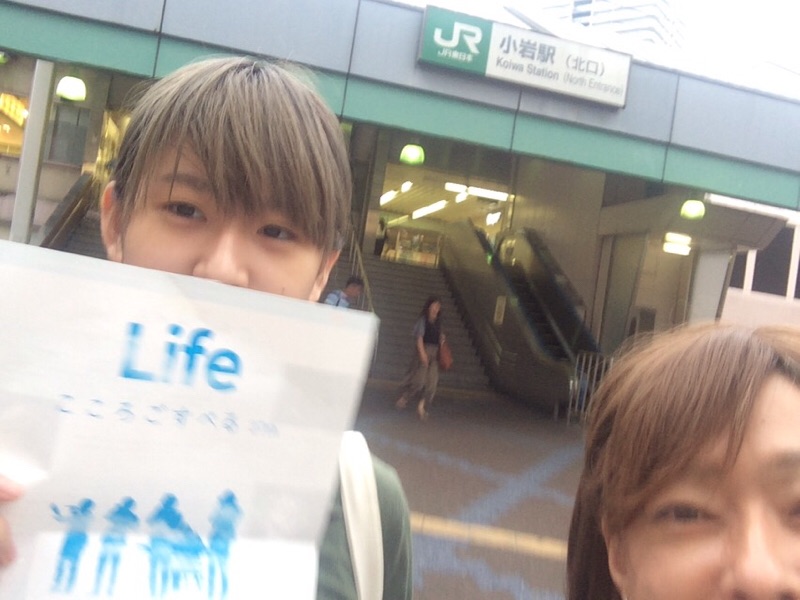 今朝も頑張って小岩で配ります。 光さんも!!はりきって!! 配。。。れませんでしたf^_^; 無理だそうです。帰ります (^O^)/ 小岩 エステル三本松