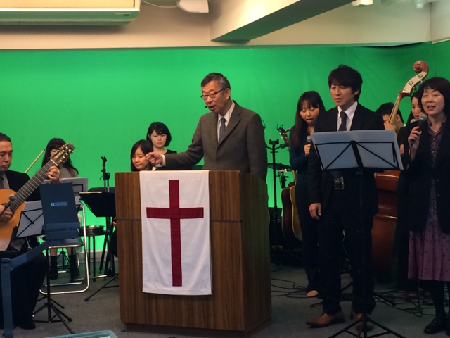 東京アンテオケ教会の牧師である秋元さんが導かれる賛美の時です。