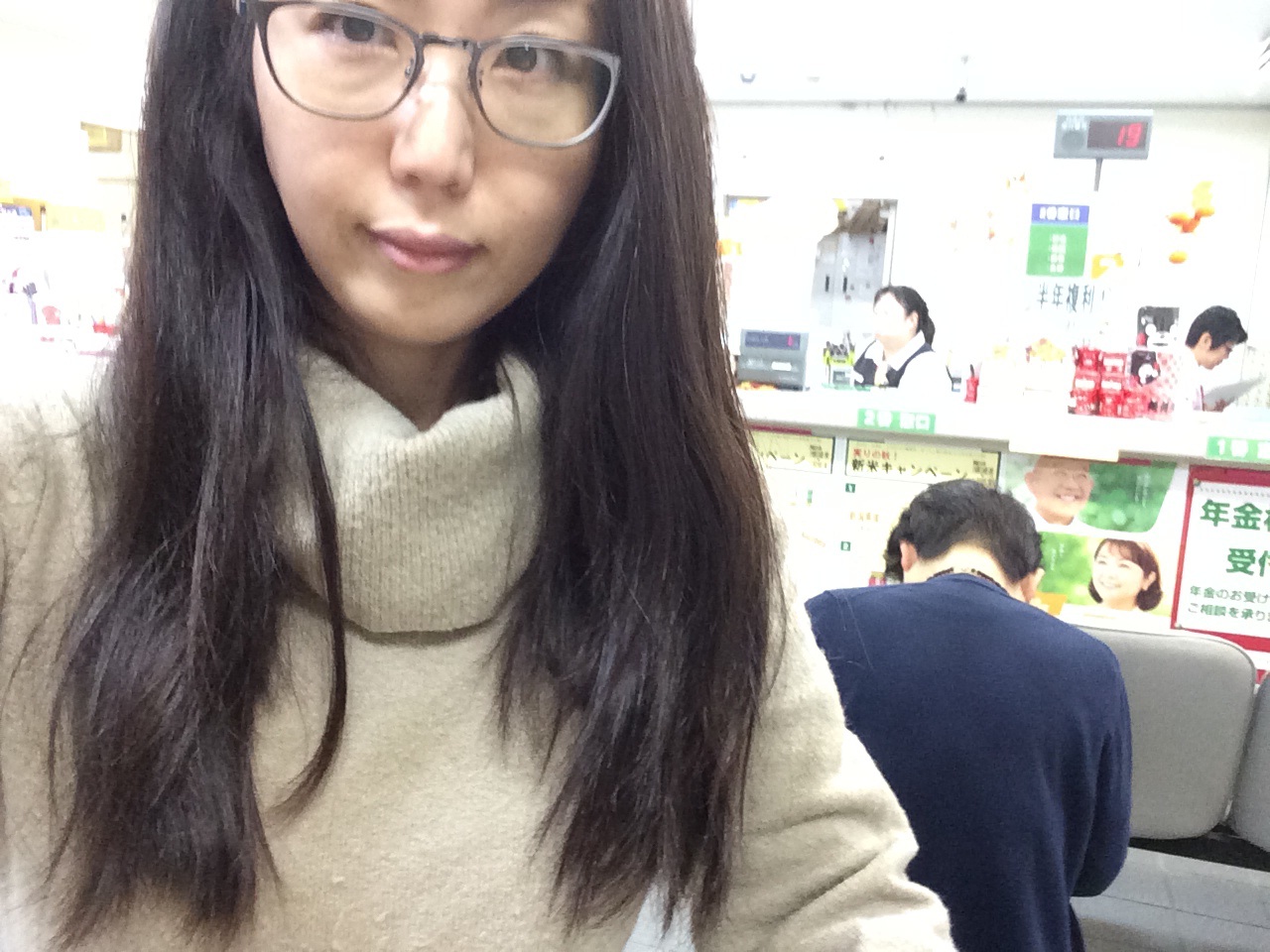 雲虹のお仕事で郵便局に来ていて、今、待ち時間です。 今日は温かい服を着て来たらちょっぴり暑い? ミカエルK.Y