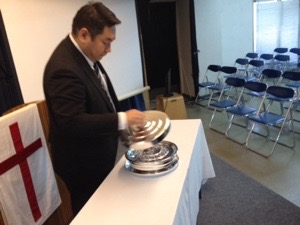 聖餐式の時、真境名さんが導きます。
