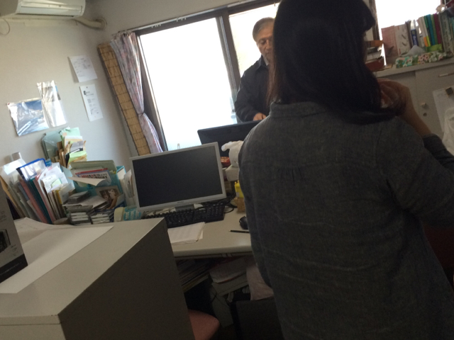 真境名さんがジャケットを着ています。 この光景を見ると寒さを感じる季節なったなぁと思います。