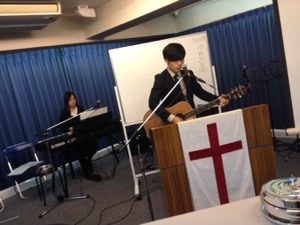 礼拝スタートしました。 奏楽の清水さん、来週からイスラエルへ行くそうです。