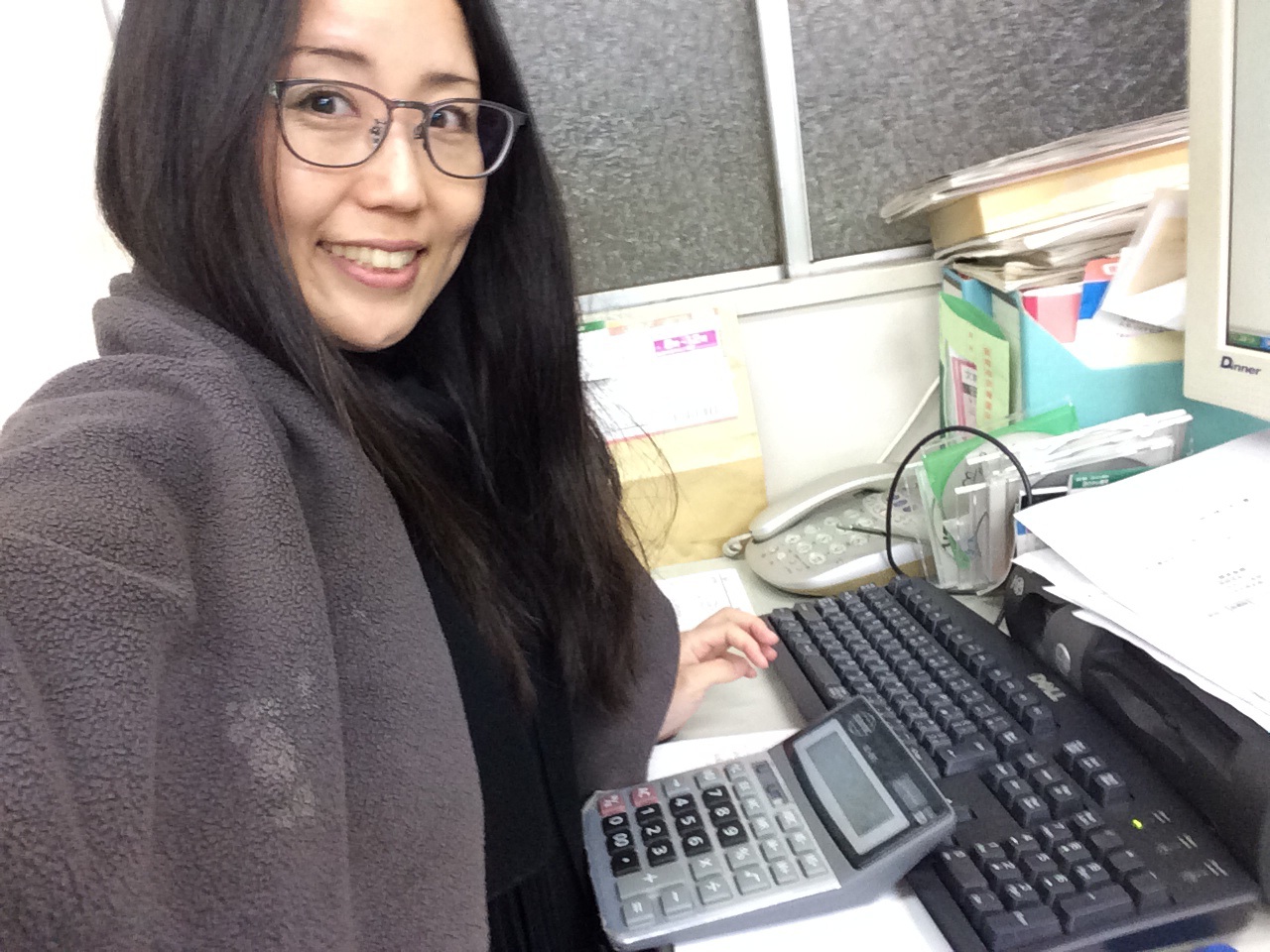 以前弟にもらったひざ掛けかぶって仕事〜。 何年も洗ってないので今日持って帰ります。^_^ ミカエルK.Y