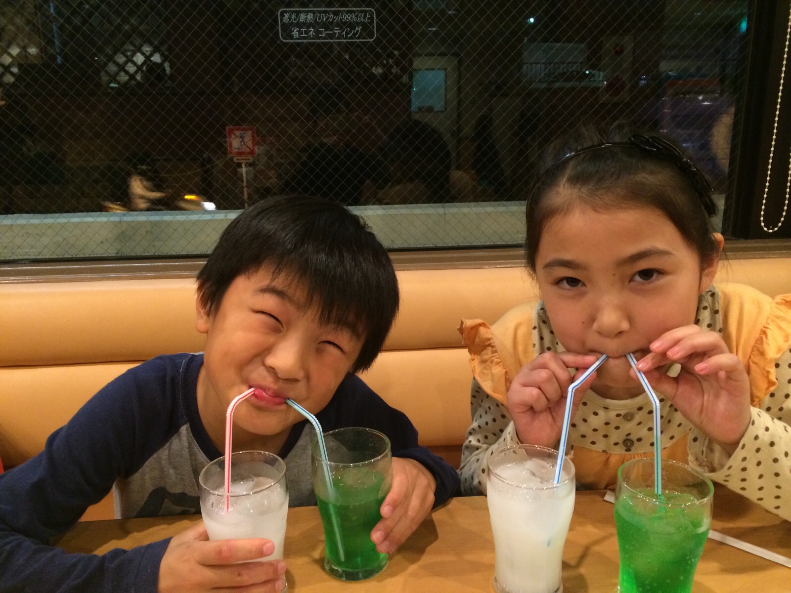 お姉ちゃんは2泊3日の移動教室で不在のため、 特別にファミレスへ☆ カルピスソーダなり〜(^_^) 出西家