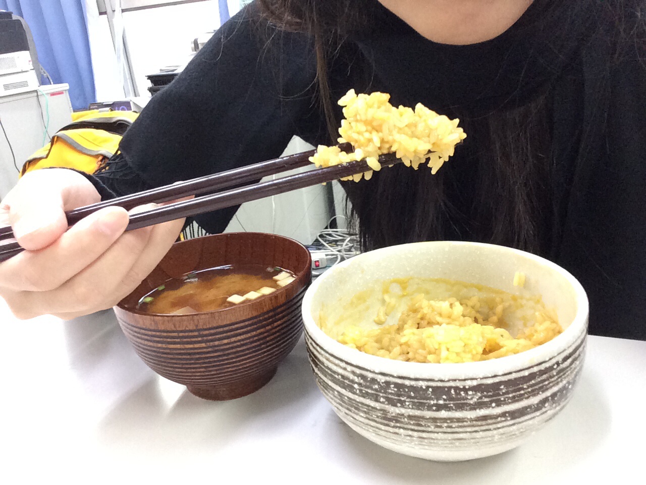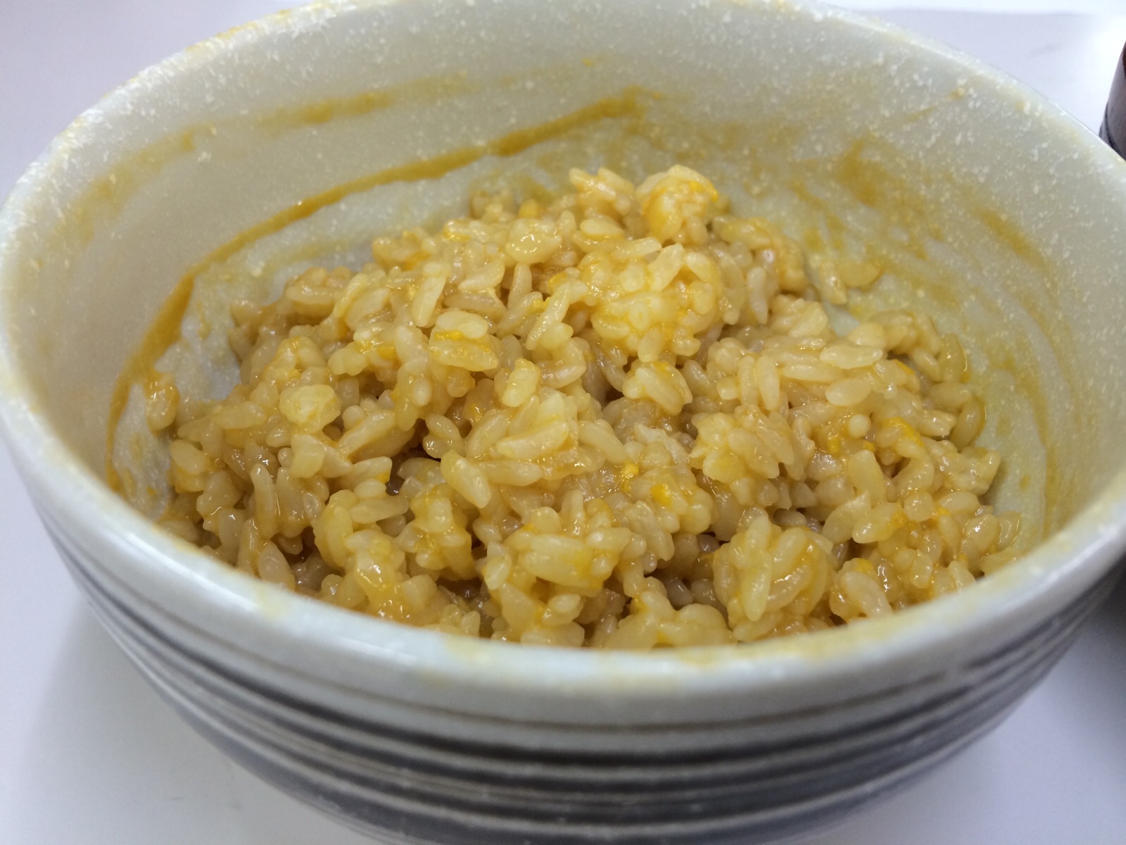 卵ご飯です。 ちょっと醤油を入れ過ぎたかな?