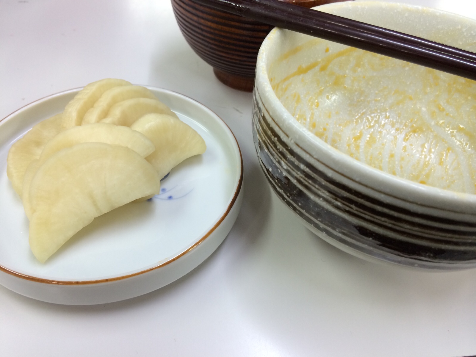 卵ご飯の味がむしろ薄かったので、べったら漬けを食べることに。 教会のメッセージ(説教)の中で出てくる「べったら漬け」。 ミカエルK.Y