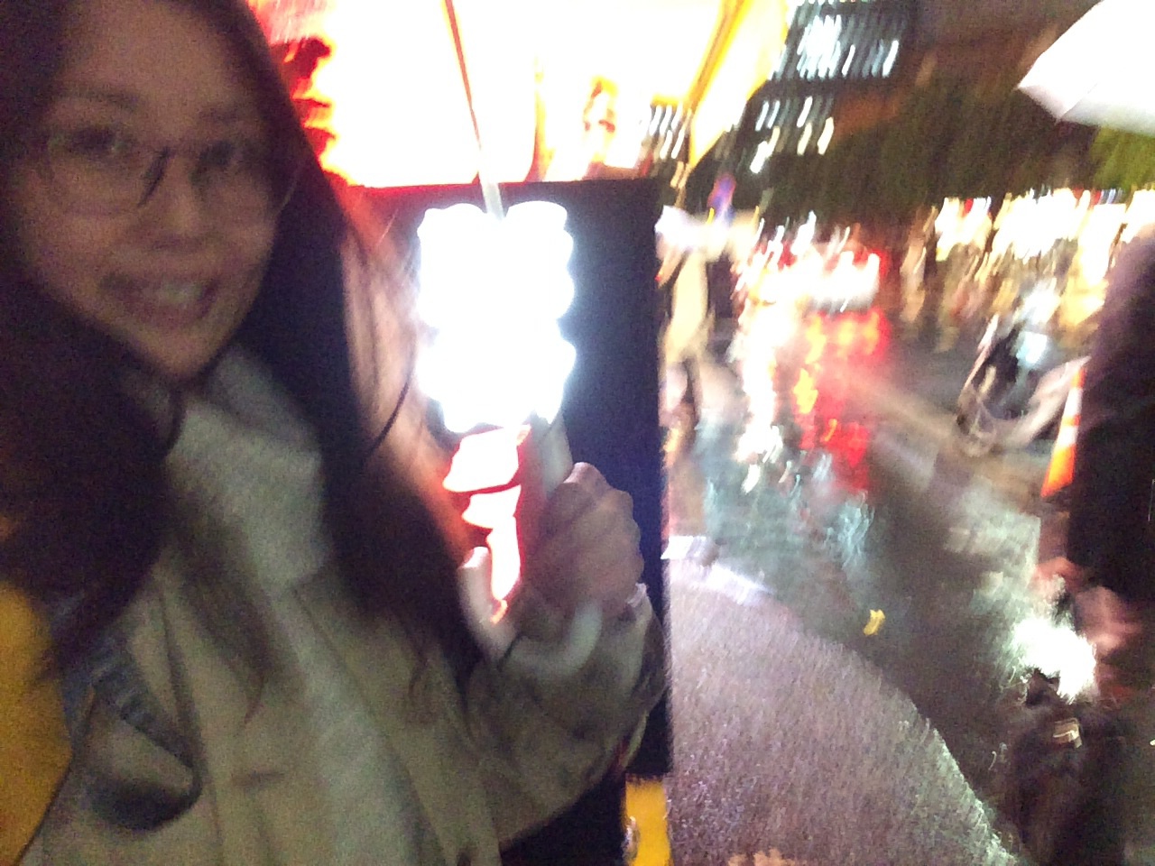 時間ないので泣く泣く替玉あきらめ、電車の中です。 これから路上ライブです。 ミカエルK.Y