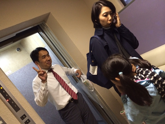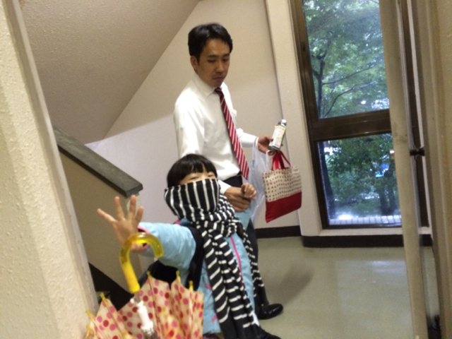 そしたら、お父さんがピースサインで登場! お迎えに来られました。