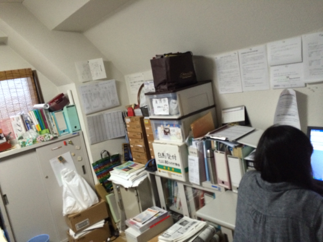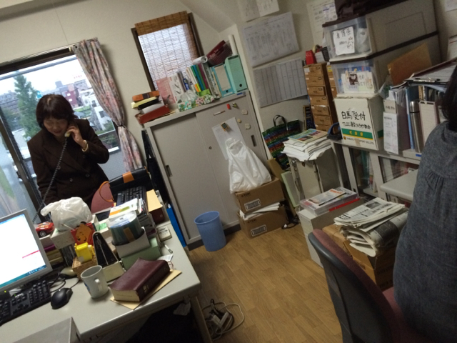 外は雨…ちょっと寒いですね。 あれっ、洗濯物が干したままのお家が…! 教会事務所から〜