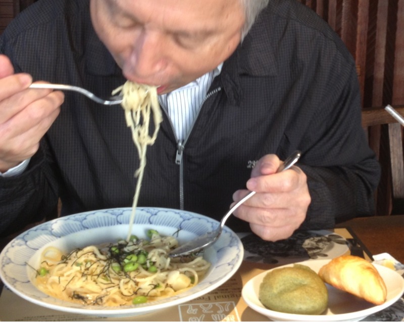 用事も済み、帰宅途中生パスタのお店に寄りました。 ランチタイムに間に合い、美味しくいただきました! 焼きたてパンが、食べ放題で満足しました〜!amagai
