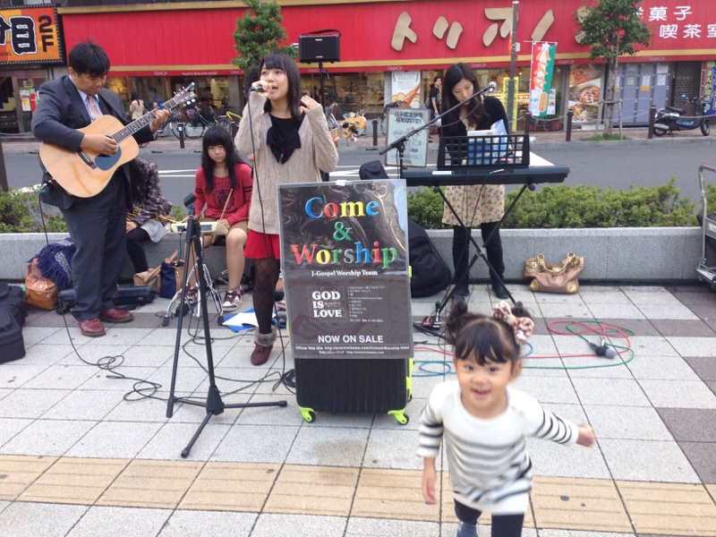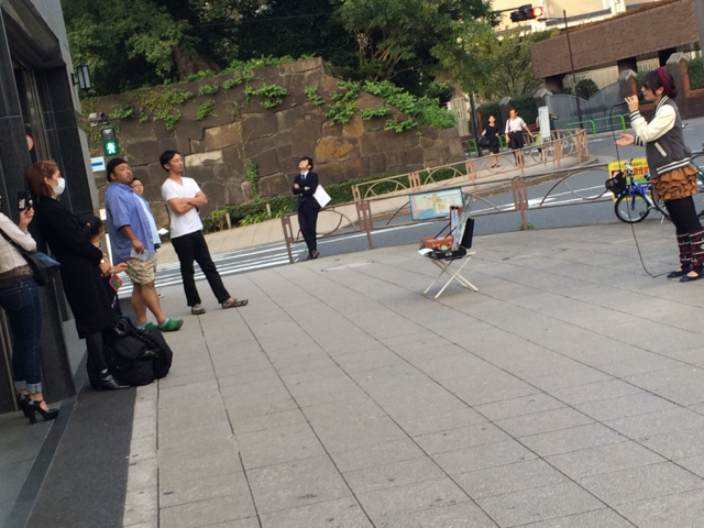 次はisraelが路上ライブを。するとイスラエルちゃんが大好きなミーちゃん!そばまで聞きに!