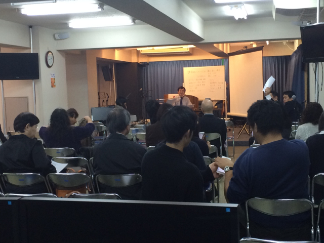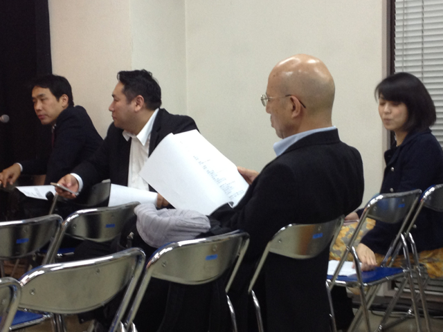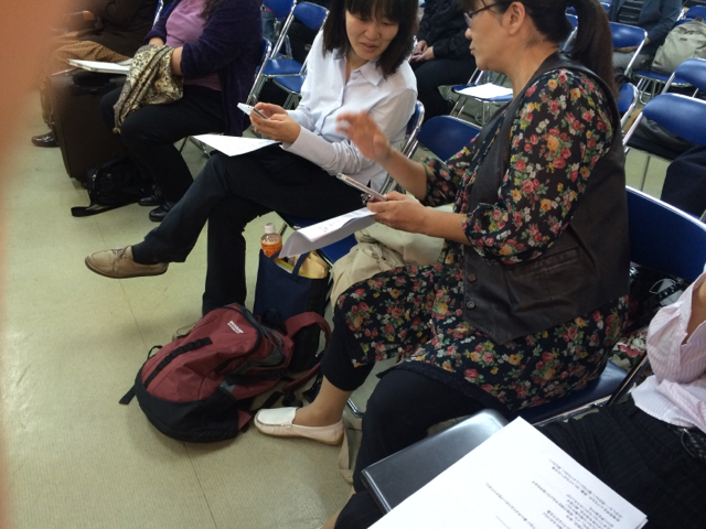 皆さん、集まって説明を聞いてます。