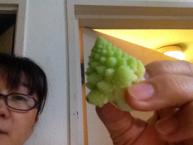 いつもは持っていかない大学生の息子も持参するとのこと。 ポイントは、実家から送られてきたこのロマネスコ。 カリフラワーとブロッコリーのハーフみたいな感じです。 Joy.M