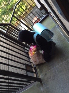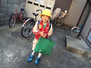 こんなに荷物いっぱいでカッコ悪いからダメ、と正面からの写真を撮らせてくれなかった娘です。