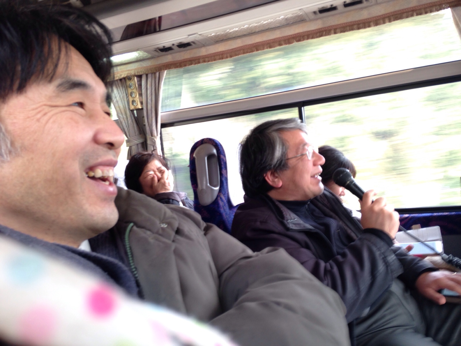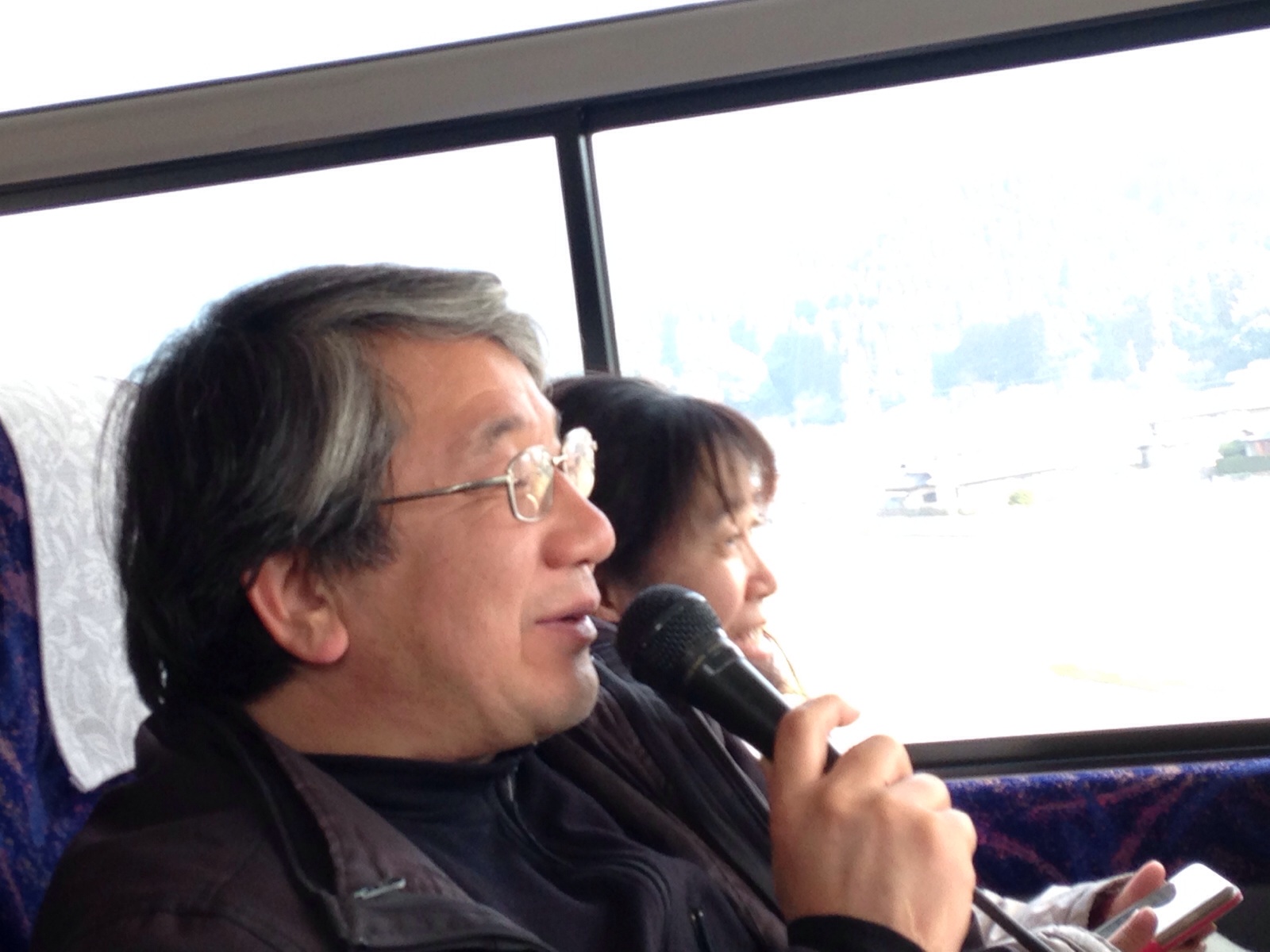 彼杵に向かうバスの中で、またまたお話をして下さっています。