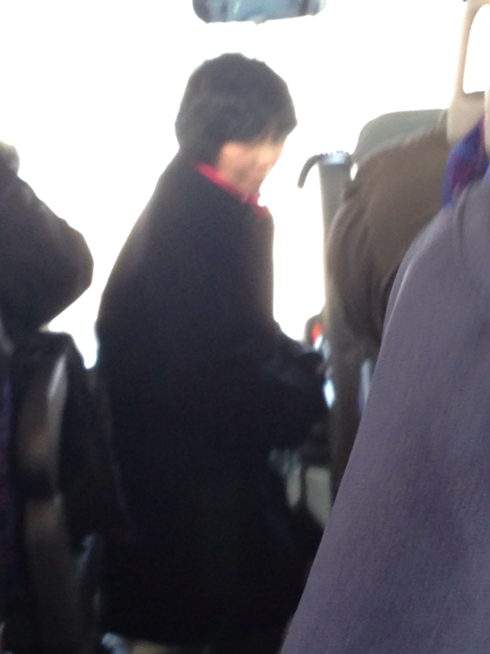 あやちゃん、バスの中でお祈りしてます。