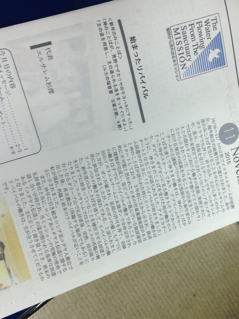 徹夜祈祷会第二部の前にイスラエルチームの感動の証が載っているミッション誌を読むおふたり(^^) 裏方oji