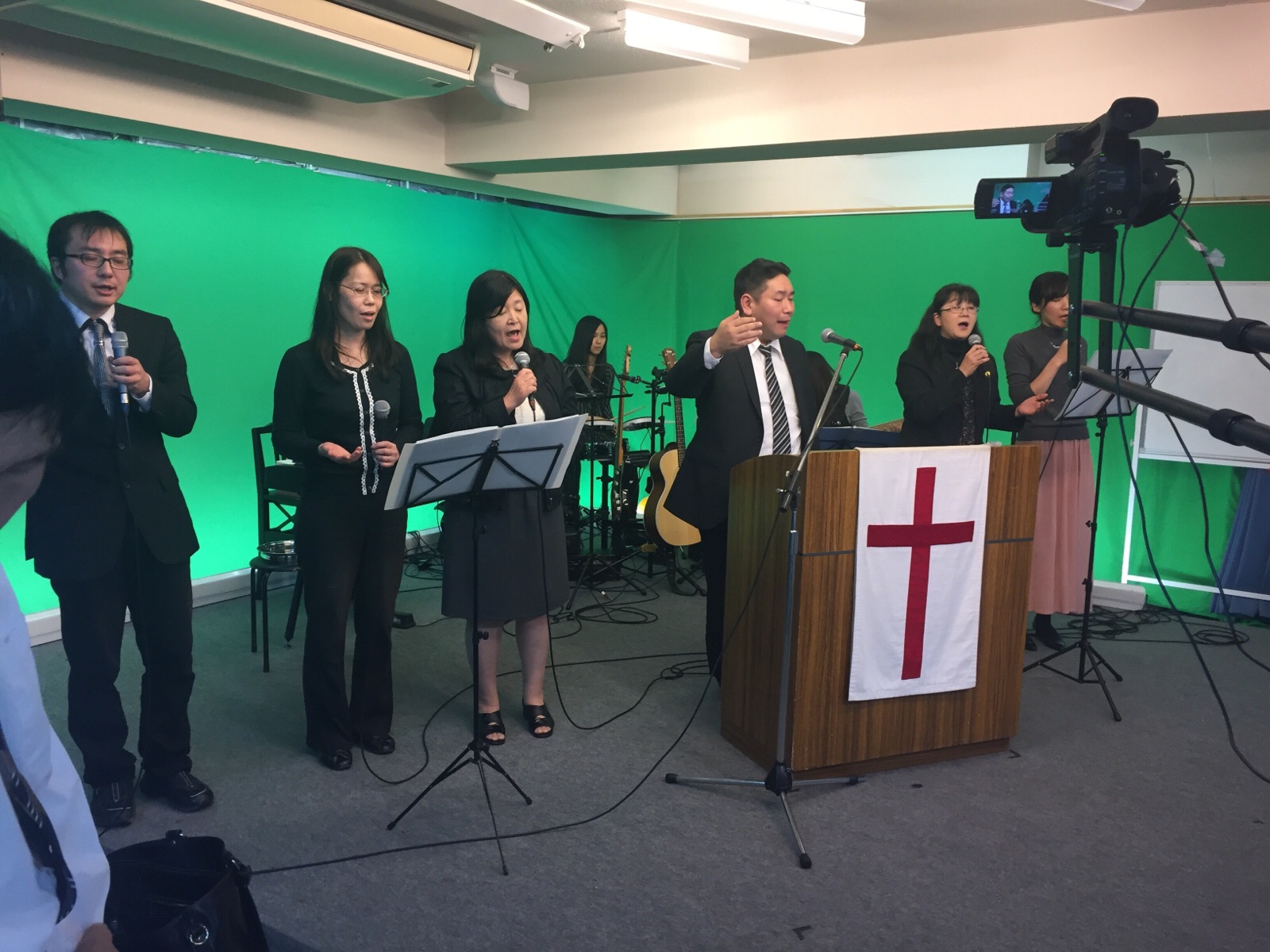 真境名さんチーム、セミナー前の賛美を導きます。