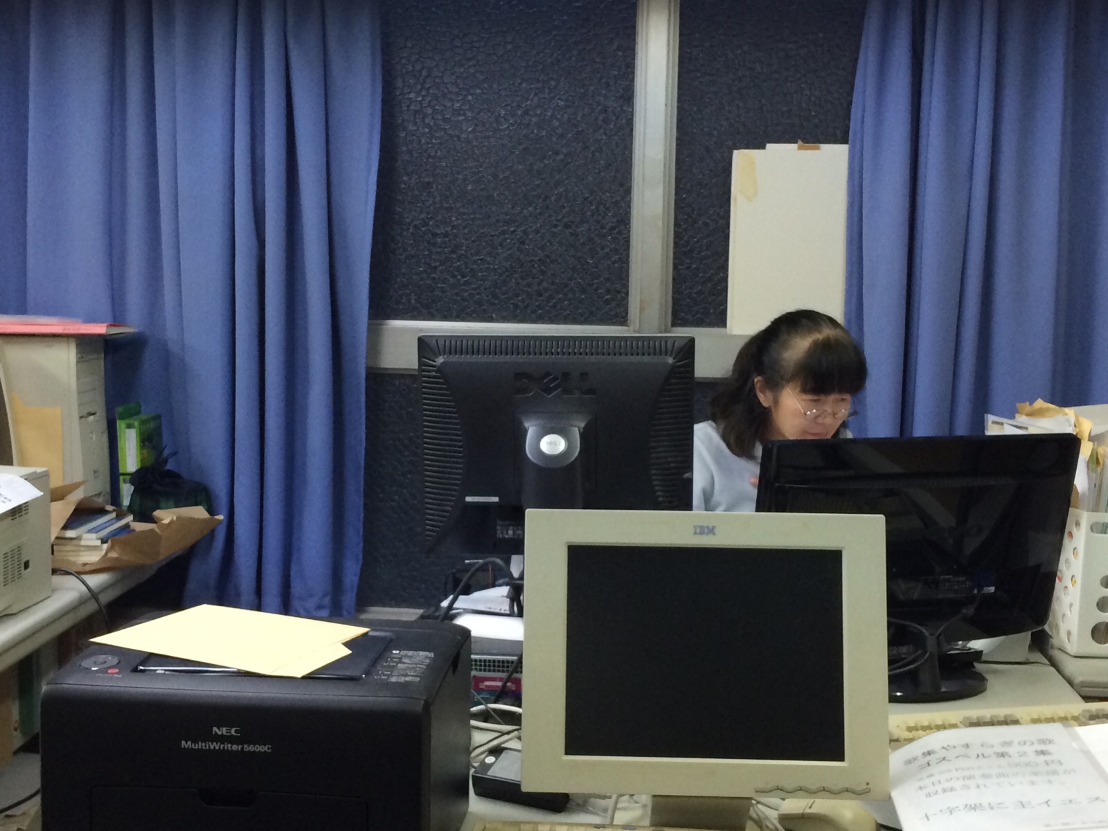 こころごすぺるで、受付けなどをされる加藤さんも、現在、雲虹事務所でお仕事中〜。 裏方会計ミカエル