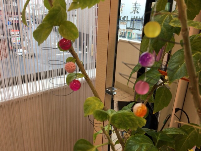 今日、髪をカットに行ったお店に、こんなものが。 ハイビスカスの木にビーズがいっぱい。キャンディーみたいでした。 Kayano
