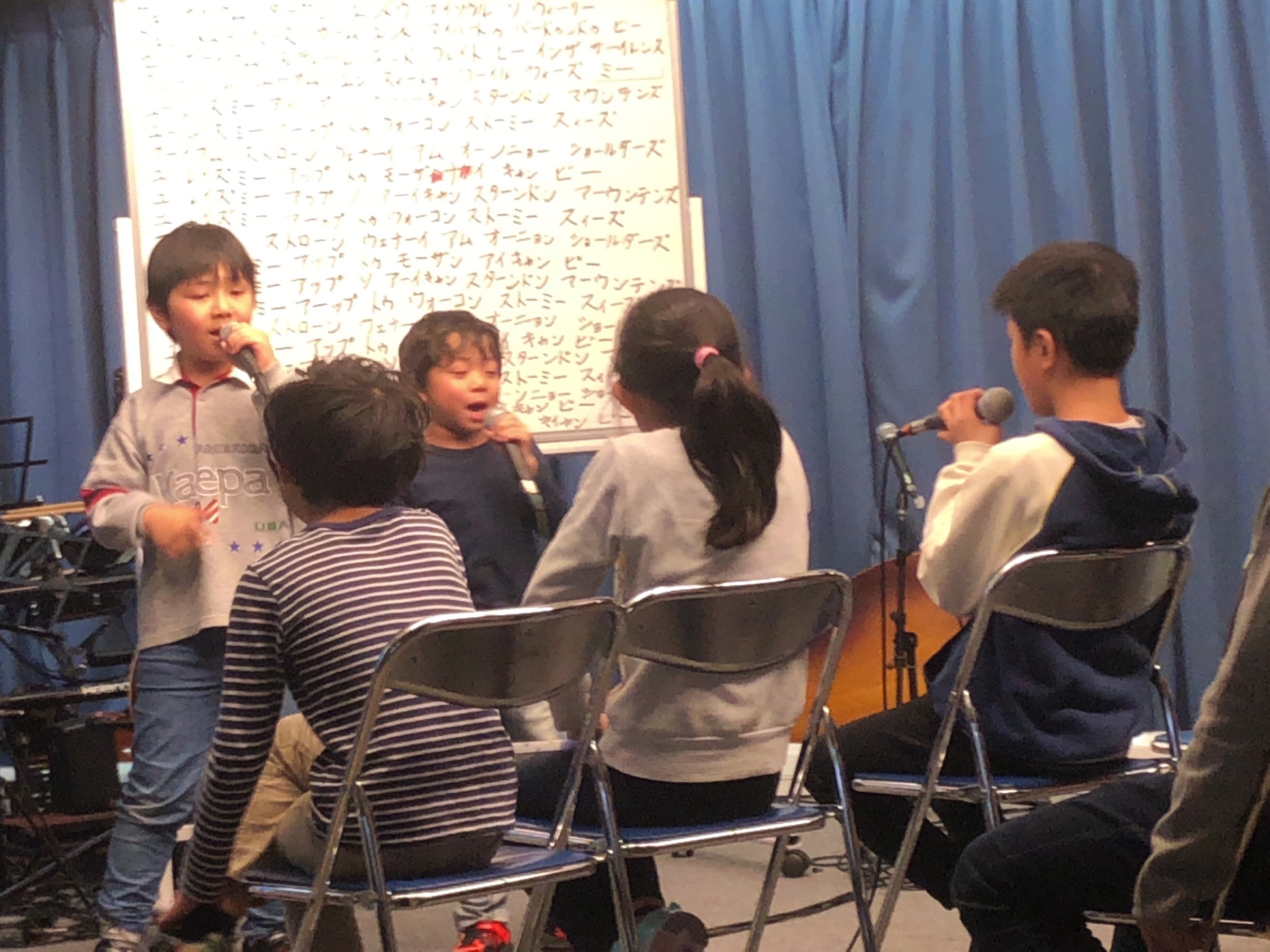 デニダビ君はまだ骨折が良くなってないので疲れて椅子に座って歌ってます。 みんなノリノリで練習できました。