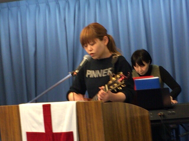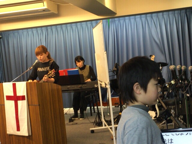 春休み中の優斗君! 火曜礼拝に来ています。 Kayano