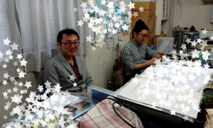 4/18(水)、NPO礎の石孤児院 東京オフィスにて、いろいろ作業をする、星名くんと ヨハネくんの様子です。 ちなみに、ヨハネくんの、三角の帽子に注目〜☆