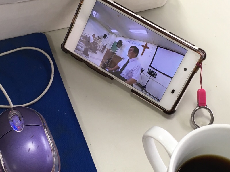 雲の間にある虹出版です。 沖縄の聖会の映像でメッセージを流しながら仕事しています。 kato