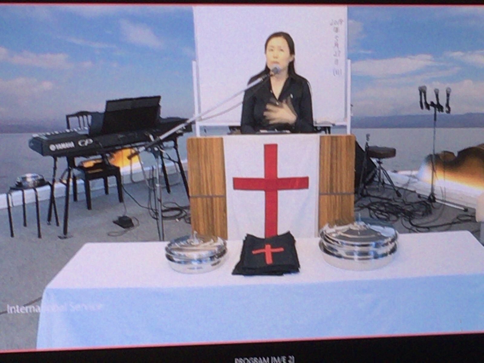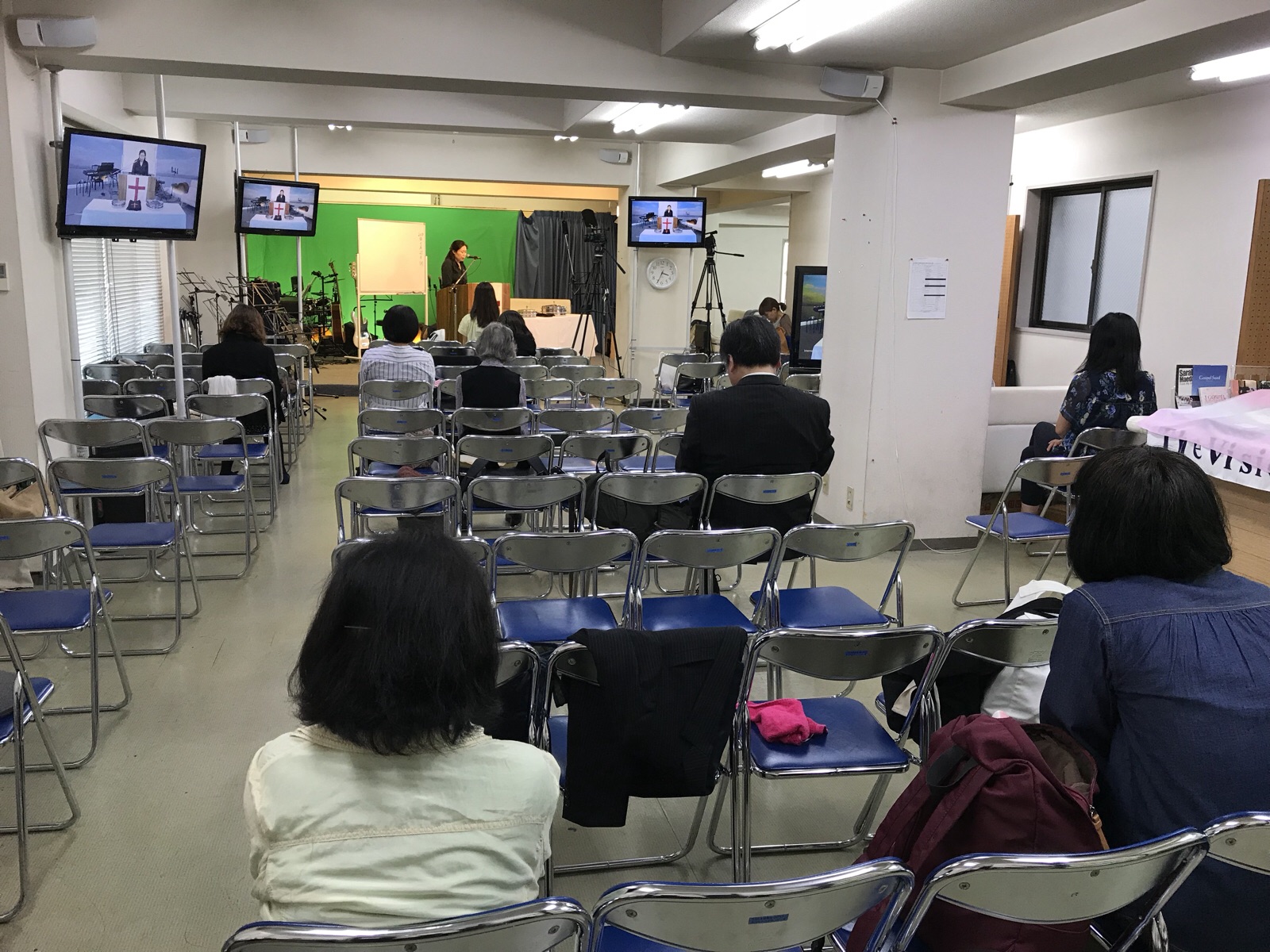 インターナショナル礼拝後の会堂では、ゴスペルクワイアの練習が始まっています。