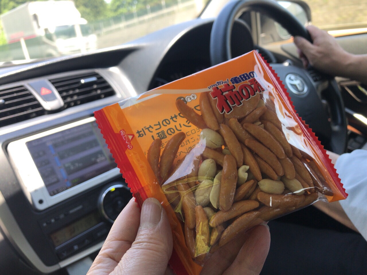 まだちょっとあるねーって言ったら… あれ食べた〜いと! ハイハイいただいた車のお供! amagai