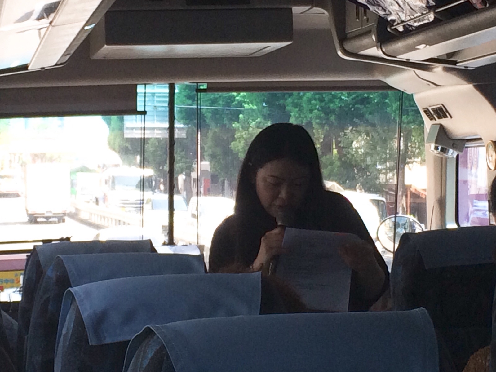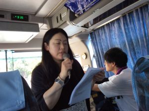 シオンさん、バス係りからのご案内をされてます。 東京アンテオケバス2号