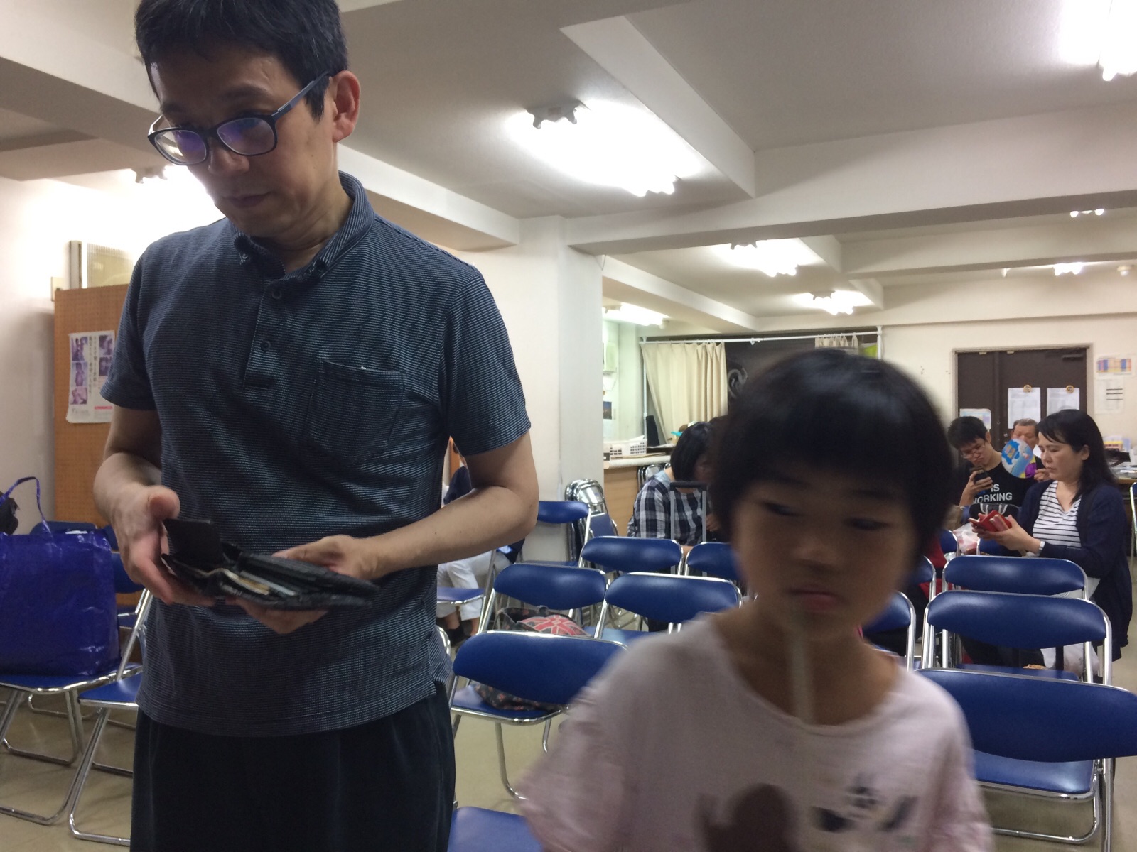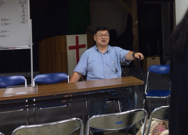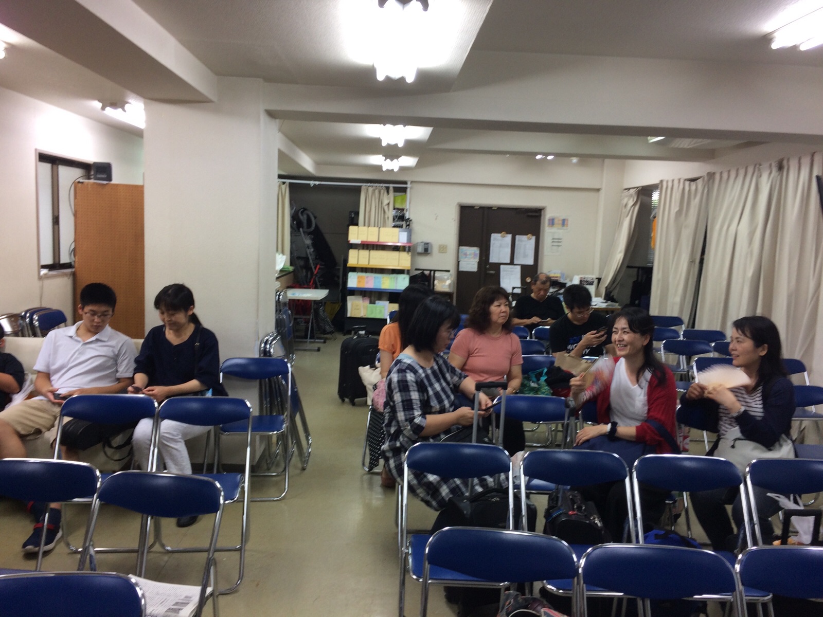 バスの受付け終えて、会堂でちょっと休んおられます。 東京アンテオケバス2号