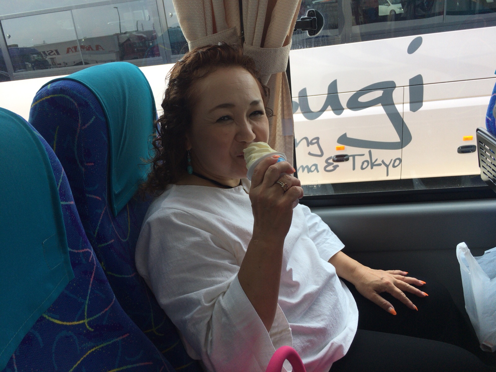 アイス食べてるイスラエル真理子さん! 東京アンテオケバス1号