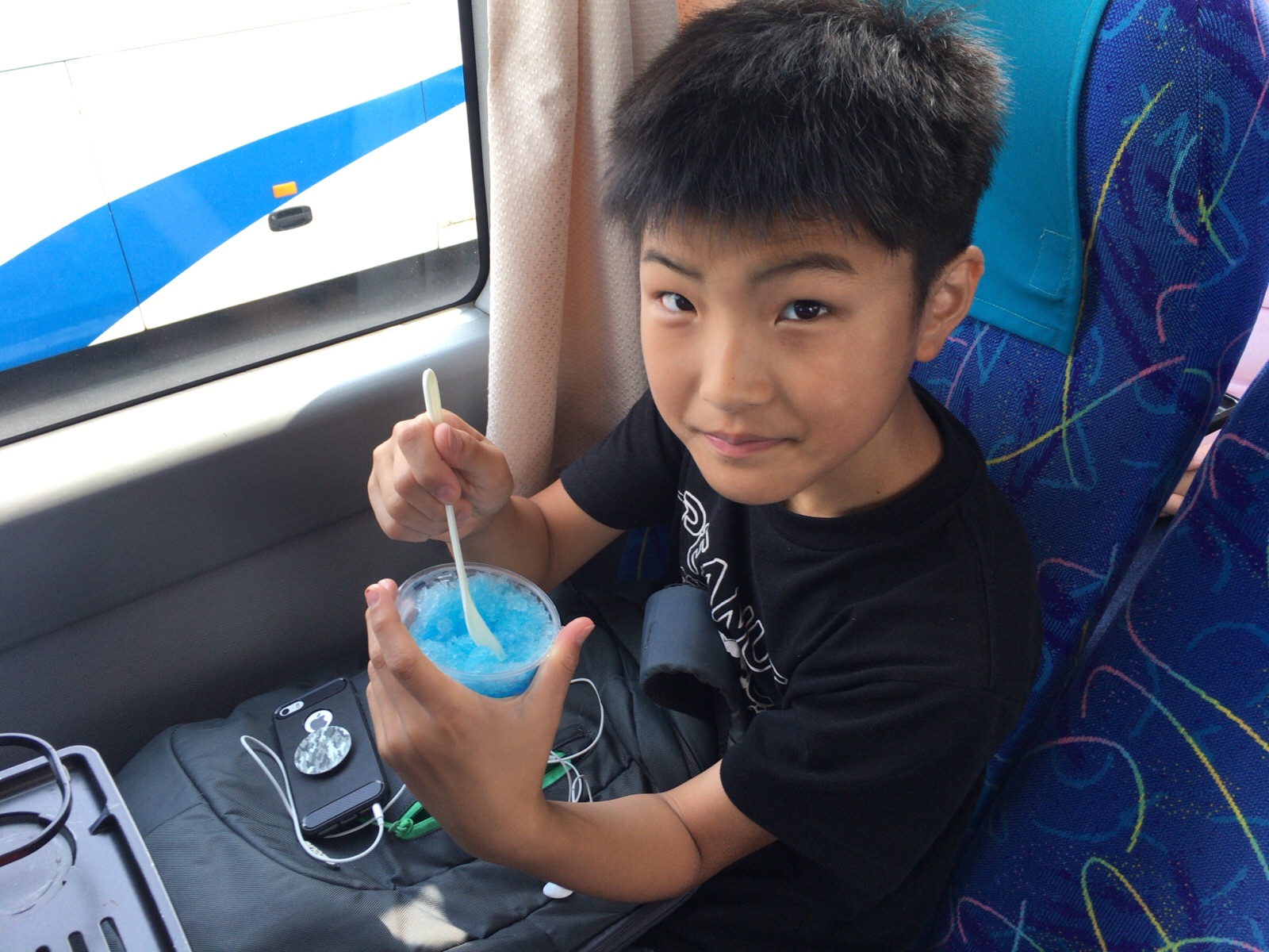 お母さんと一緒の優斗君! かき氷が美味しそうだね。 東京アンテオケバス1号