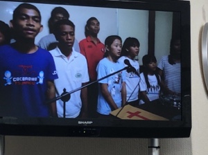 カンボジアチーム映像を見てます。