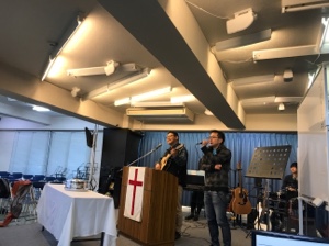 土曜礼拝、あいちゃんの角笛でスタートです!